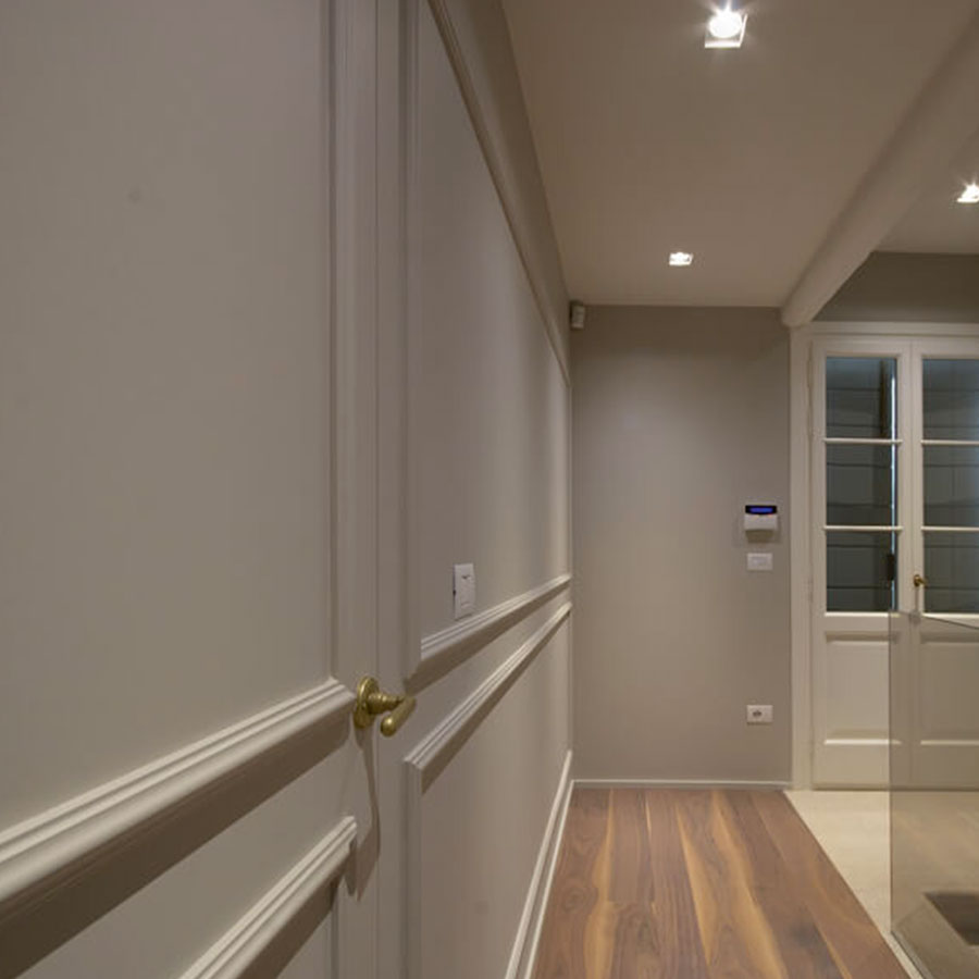 Tra le tipologie di porte, spesso sono richieste le cosiddette porte invisibili, che abbiamo citato come porte raso muro o filo muro, e le porte che filtrano living e cucina con soluzioni scorrevoli, magari semitrasparenti. Nei casi in cui lo spazio lo permette, si possono realizzare anche porte a scomparsa, in cui le ante scompaiono nel muro.
